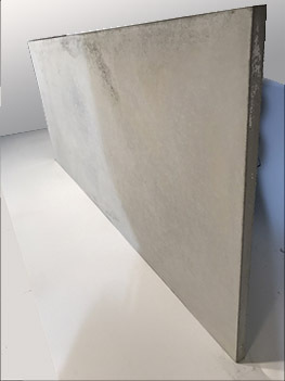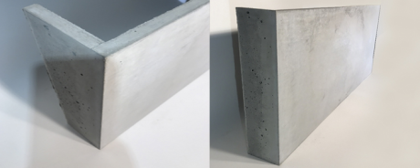 Made with real concrete polymer modified reinforced with fibers and wire mesh, design for interior use can be seal, stain or boft. The corner of the panel is 4 inch by the different sizes of panels.